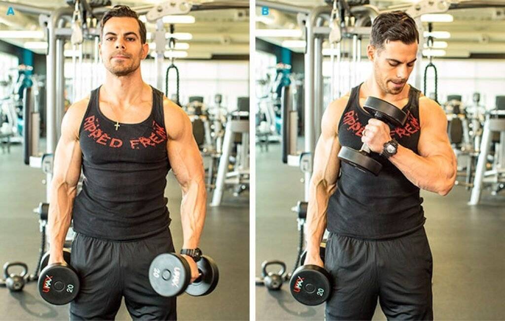 Это упражнение в основном направлено на развитие небольшой мышцы между бицепсом и трицепсом — на брахиалис.