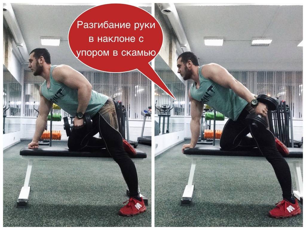 Прижмите руку, в которой держите гантель, к корпусу, а другой уверенно обопритесь на скамью, чтобы стабилизировать положение;