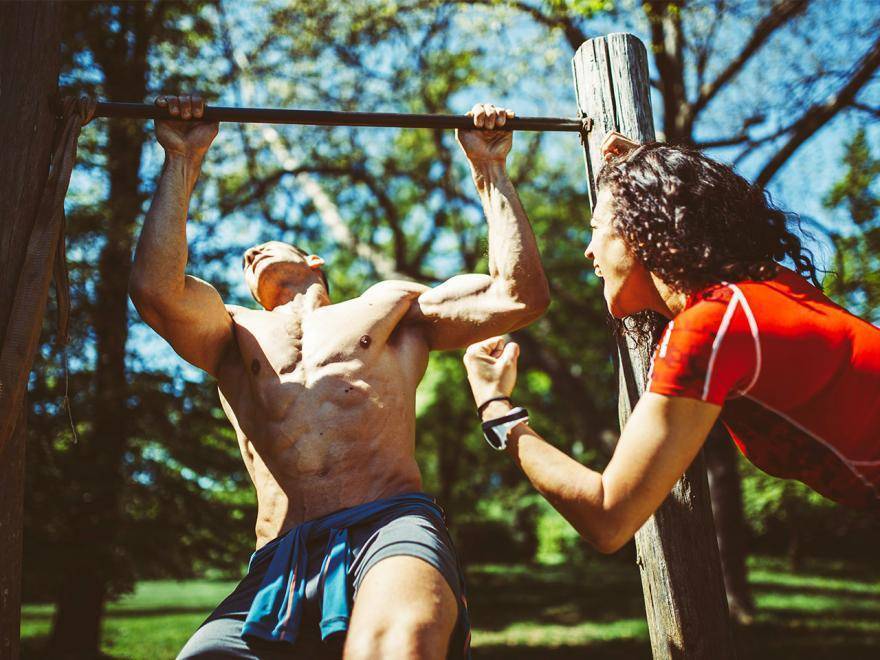 Одно из основных упражнений для создания сильного торса атлета. Отжимания нагружают мышцы груди, трицепса и дельт. Для смещения нагрузки на грудь необходимо найти брусья с более широкой постановкой опор.