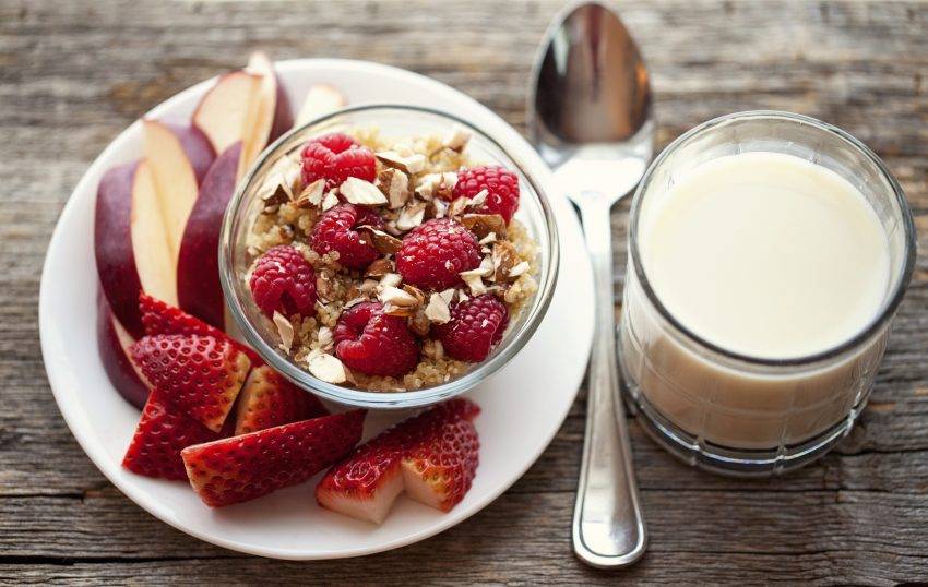 - Также предпочтительнее включить в состав меню на завтрак сложные углеводы – молочные продукты, фрукты, крупы. Простые углеводы, то есть сладости и выпечку, лучше свести к минимуму.